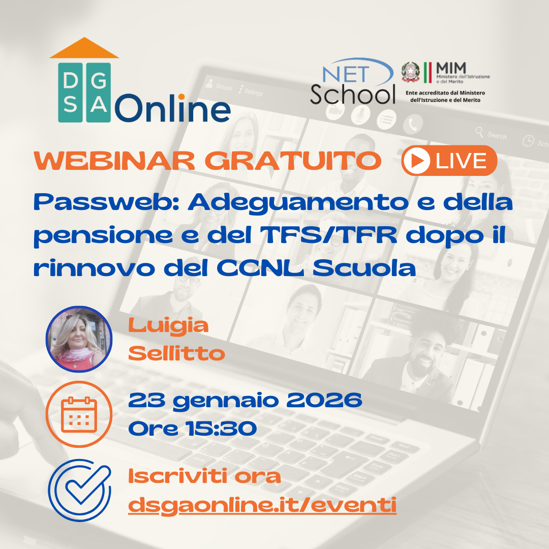 Il rinnovo contrattuale del Comparto Scuola, con effetti economici retroattivi, incide sulle retribuzioni utili ai fini previdenziali e può rendere necessaria la riliquidazione di pensione e TFS/TFR. Il webinar chiarisce quando scatta la riliquidazione e chi fa cosa (MEF/NoiPA, INPS e scuola), con un focus operativo su Passweb e sulla gestione degli “Ultimi Migli” per i dipendenti collocati in quiescenza durante la vigenza contrattuale. Verranno analizzate le variabili decisive (data di cessazione e data di sottoscrizione del CCNL), i principali casi pratici e le criticità ricorrenti per le segreterie